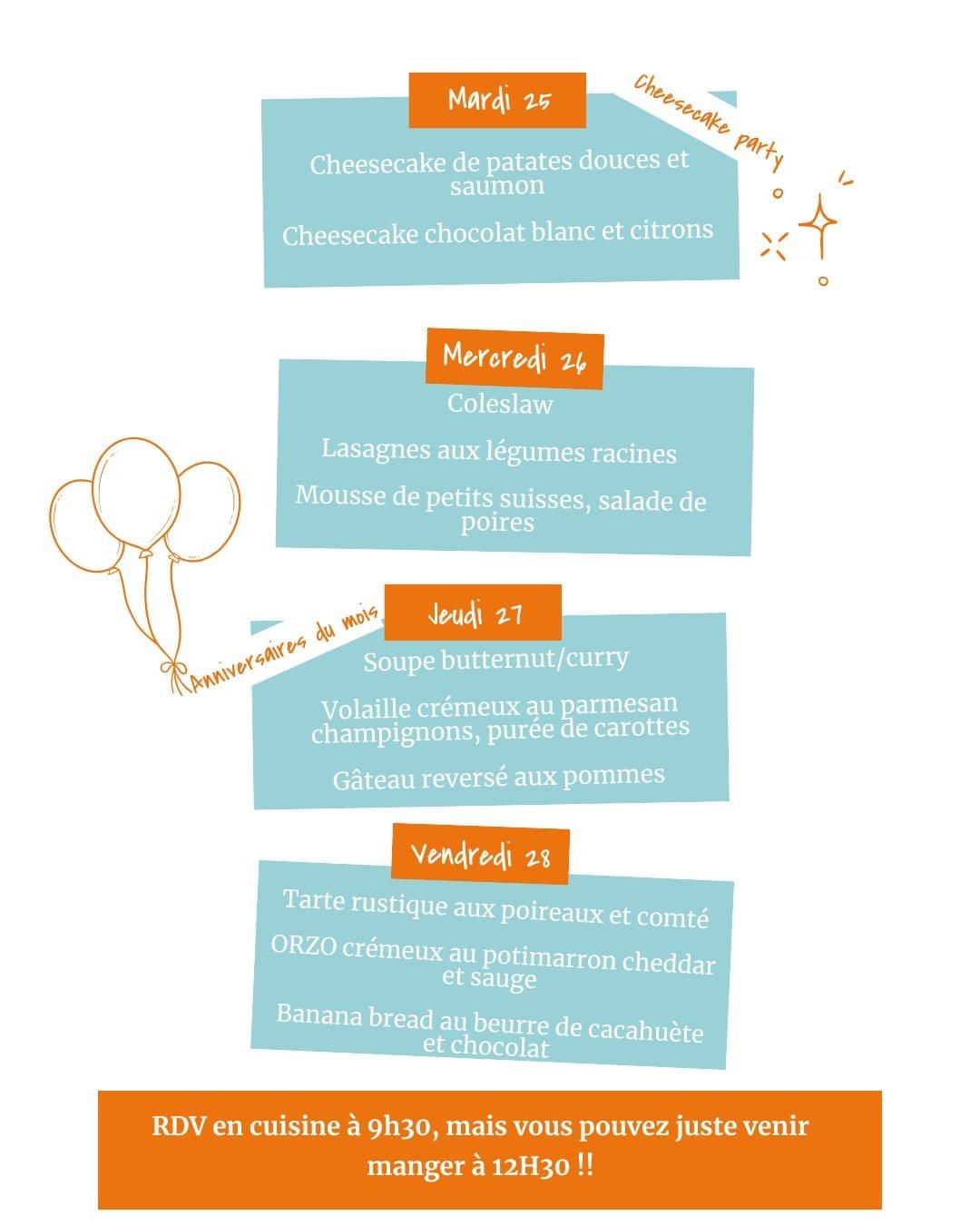 👉 A 9h30 pour cuisiner (nombre de places limité). Repas à 12h30.Merci de réserver ci-dessus ou au 03/20/95/71/66