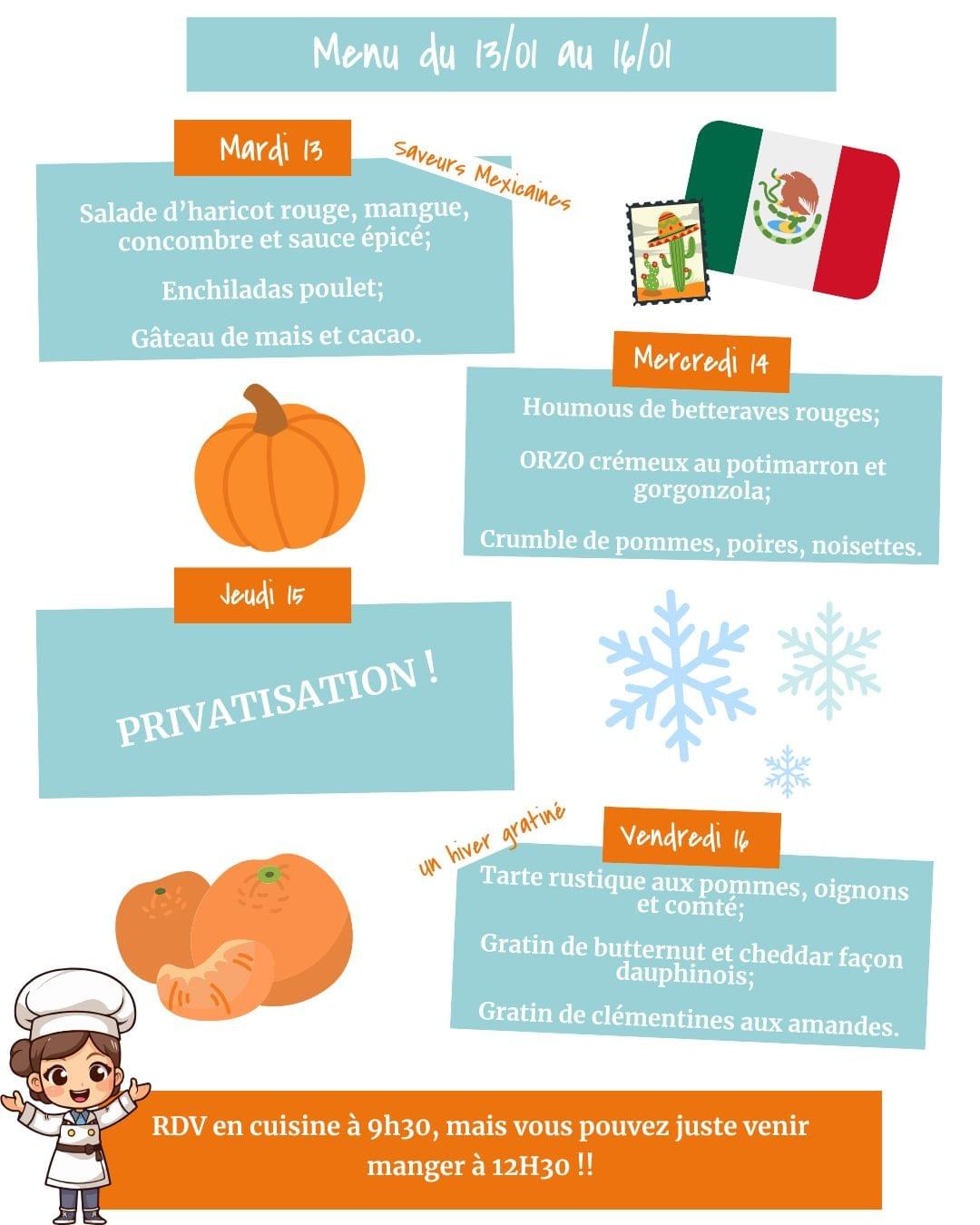 👉 A 9h30 pour cuisiner (nombre de places limité). Repas à 12h30.Merci de réserver ci-dessus ou au 03/20/95/71/66